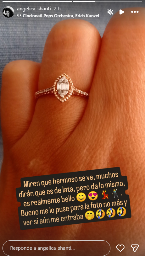 Además explicó que espera que el próximo año puedan realizar en Turquía, junto a toda su familia y la de su novio, las ceremonias de la cultura local para celebrar esta unión. Por otra parte, en las historias de su cuenta de Instagram, Angélica Sepúlveda mostró el impresionante anillo que le dio Gürsel: "Miren qué hermoso se ve, muchos dirán que es de lata, pero da lo mismo, es realmente bello".