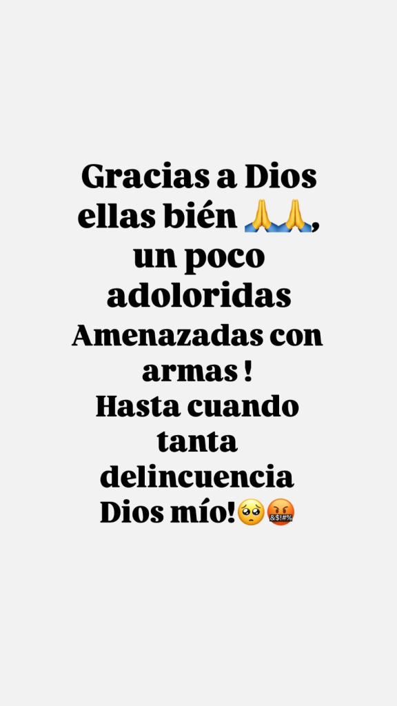 “Gracias a Dios ellas están bien, un poco adoloridas”, agregó la madre de López, quien también aprovechó la plataforma para pedir ayuda a sus seguidores en la búsqueda del vehículo sustraído. El caso de Coté López reaviva la preocupación pública sobre la creciente inseguridad en las carreteras.