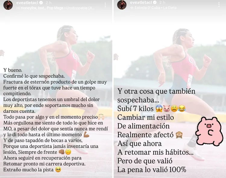 Con esta recuperación por delante, Evelyn se prepara para retomar sus entrenamientos y seguir brillando en el mundo deportivo chileno.revela fractura de esternón tras su paso por Mundos Opuestos