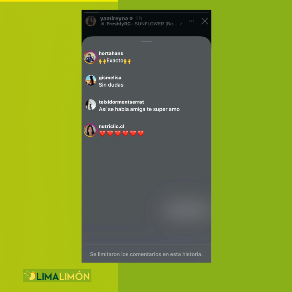 Tales como, "Exacto"; "Así se habla amiga, te súper amo"; "Sin dudas"; son algunos de los mensajes que Yamila Reyna recibió por parte de su círculo cercano, pues tiene restringidos los comentarios tras la polémica separación que tuvo con Américo.