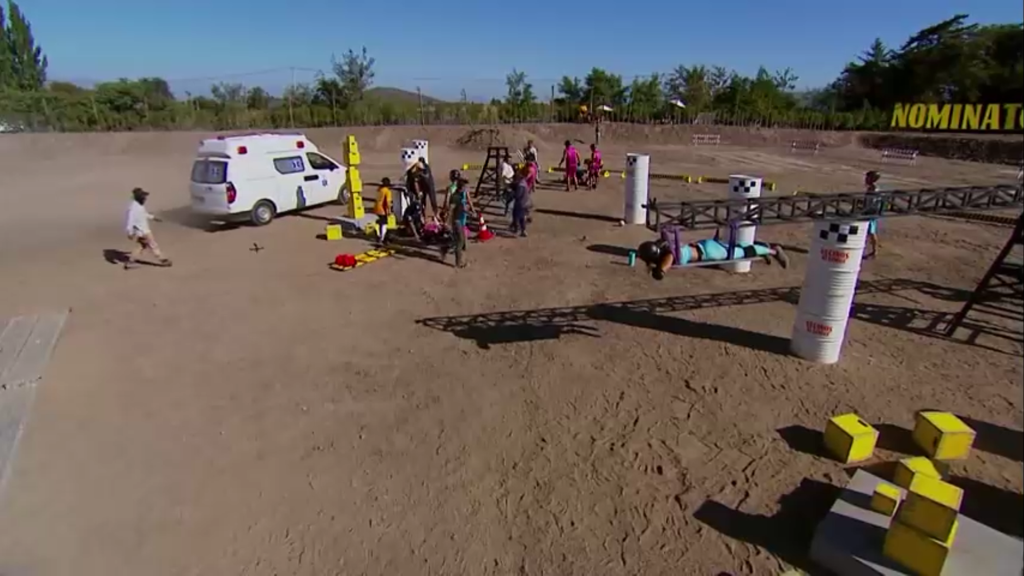 Una delicada situación se vio en el más reciente episodio de Vecinos al límite, cuando el equipo rosado y el calipso se enfrentaron en un duelo para definir al nuevo nominado. Pero a mitad del enfrentamiento, una de las estructuras que estaban utilizando, cedió, ocasionando un preocupante accidente que hizo entrar en escena a los paramédicos.