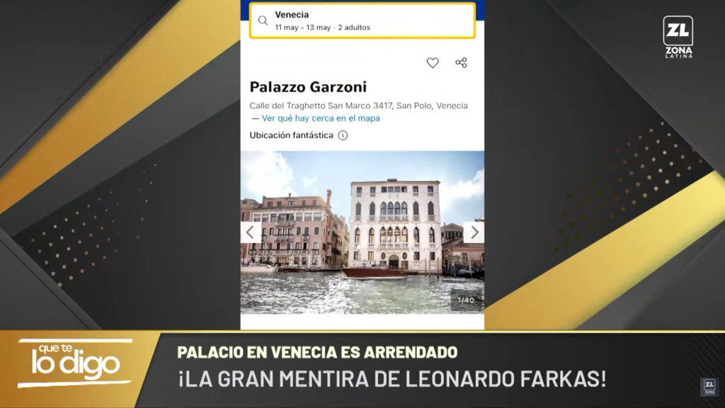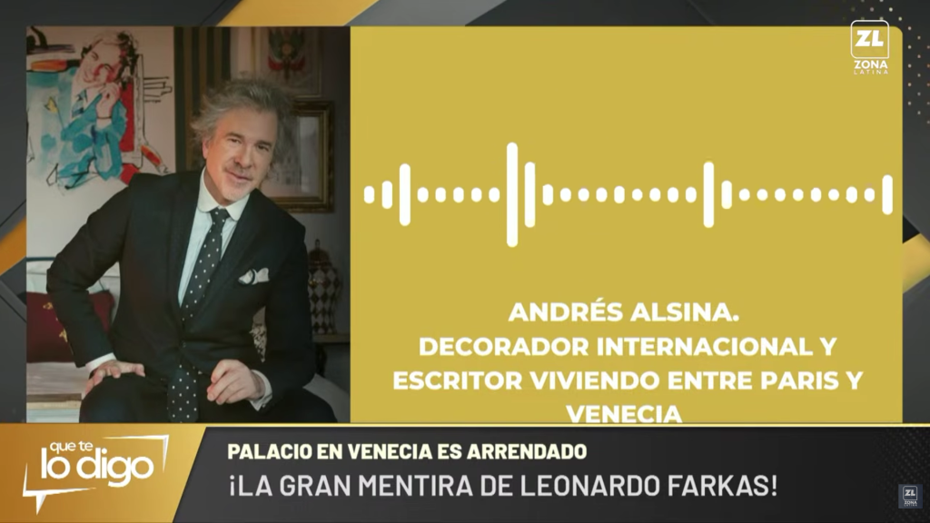 Pero eso no fue todo, pues también se contactaron con Andrés Alsina, decorador internacional que lleva años viviendo en Europa. "Yo vivo acá en Venecia, entonces esto viene de fuentes muy muy cercanas, y no solo porque vivo en Venecia... el Palacio Garzoni es un palacio del siglo XVI, que no es renacentista, como dijeron en el programa del otro canal, en Venecia no es nada renacentista, es medieval o barroco", sostuvo.