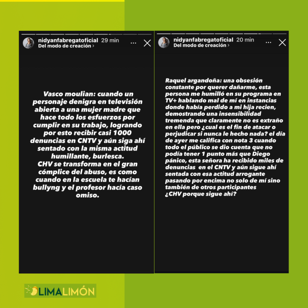 Para luego sumar a sus dichos, "CHV se transforma en el gran cómplice del abuso, es como cuando en la escuela te hacían bullying y el profesor no hacía caso omiso", y posteriormente hacer sus descargos contra la llamada popularmente, La Quintrala.