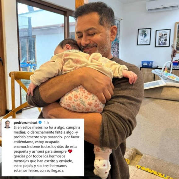"Si en estos meses no fui a algo, cumplí a medias, o derechamente falté a algo —y probablemente siga pasando— por favor entiéndame, estoy ocupado enamorándome todos los días de esta pequeña y así será para siempre", expresó el humorista.