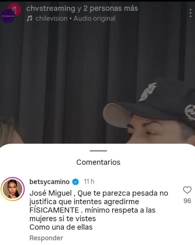 Esto luego de que la cubana dejara un fuerte comentario en una publicación en la que aparecía la transformista: "José Miguel, que te parezca pesada no justifica que intentes agredirme fisicamente. Mínimo respeta a las mujeres si te vistes como una de ellas", escribió en un video de Instagram de la cuenta de Chilevisión.