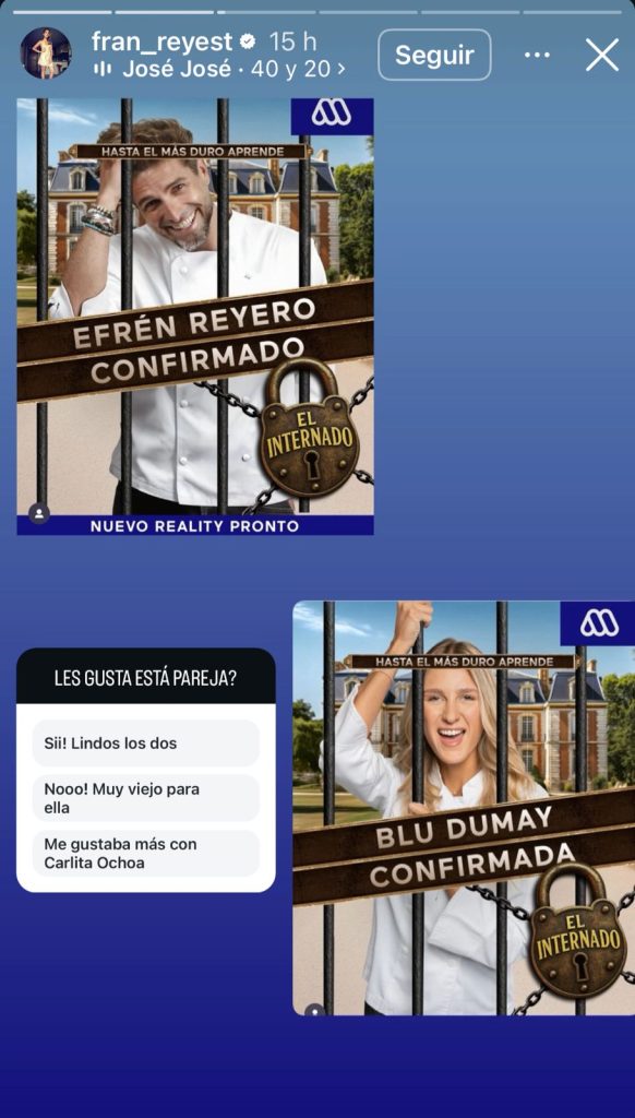 A través de sus historias de Instagram, la exrostro del matinal Mucho gusto compartió un adelanto que dejó a más de alguno con la boca abierta. En tono cómplice, Fran aseguró: “Blu Dumay está con el cuarentón español. ¿Qué me dicen?, ¿qué opinarán Zamorano y María Alberó?”. Con esa frase, encendió las redes y desató todo tipo de comentarios sobre el supuesto nuevo romance.